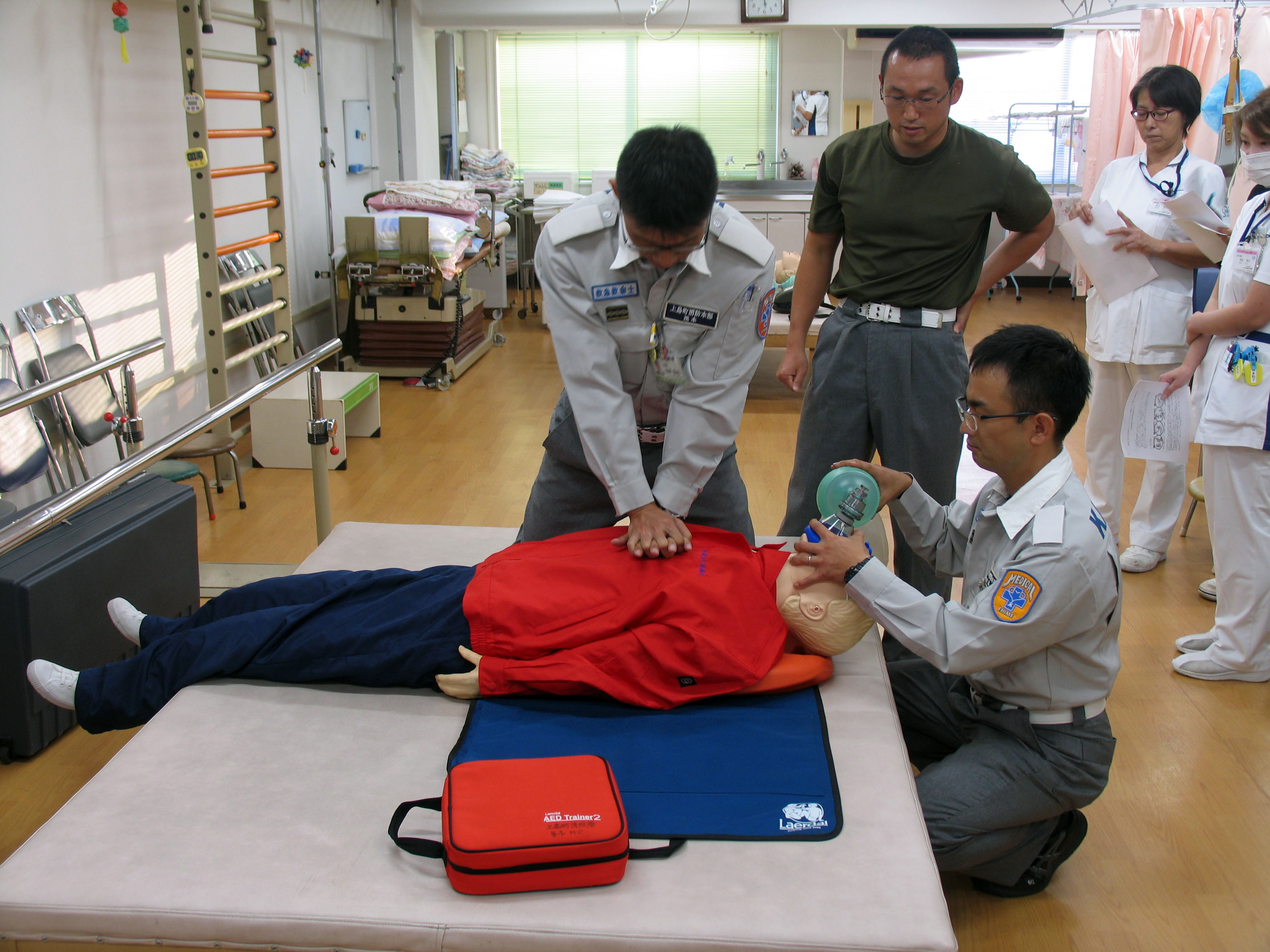 毎年1回は上島町消防本部の救急隊の方に来ていただき、当院全職員を対象とした実技講習会を行っています。